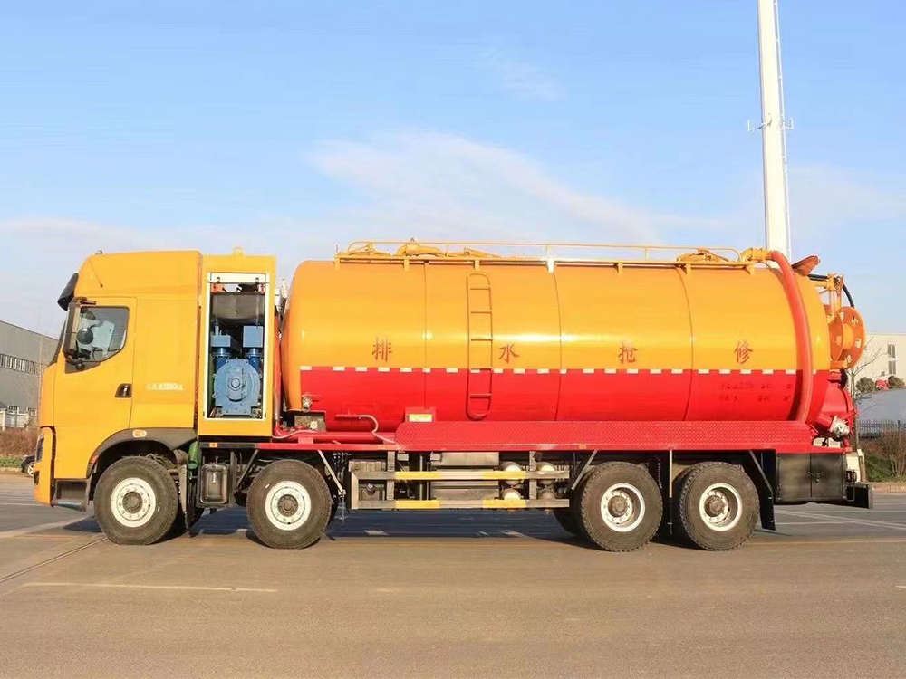 | 整车说明: | 1、该车主要用于下水道清洗及吸污,主要专用装置为真空泵和罐体。罐体外形尺寸为(直段长×直径)(mm):7100×2350,其中罐体前段为清水罐(直段长3100mm);后段为污水罐(直段长4000mm)。两罐独立,且不能同时满载。清洗功能时用清水罐,吸污功能时用污水罐。清水罐总容量11.8立方米,有效容积11.24立方米,介质:水,密度:1000千克/立方米;污水罐总容量14.75立方米,有效容积14.05立方米,介质:液态污物,密度:800千克/立方米。罐体具有举升功能;2、仅采用轴距(mm): 2050+4400+1350。外形长/后悬对应关系为(mm):12000/2675,12300/2975。侧/后防护材料均为Q235,焊接连接,后防护截面尺寸300mm×50mm,下边缘离地高480mm。3、随底盘选装驾驶室。ABS型号/企业:ABS-E 4S/4M/威伯科汽车控制系统(中国)有限公司.4、选装罐体前部安装水箱,选装顶部液压开启,选装罐体顶部护栏样式,选装侧面管道,选装后罐口液压开启样式,选装后部阀门,选装后部清洗管卷盘样式,选装罐体后部不带卷盘结构,后部箭头灯为选装件.选装底盘附件储气筒尿素罐安装位置。选装顶部罐口样式,选装罐体前部安装油缸。 | ||